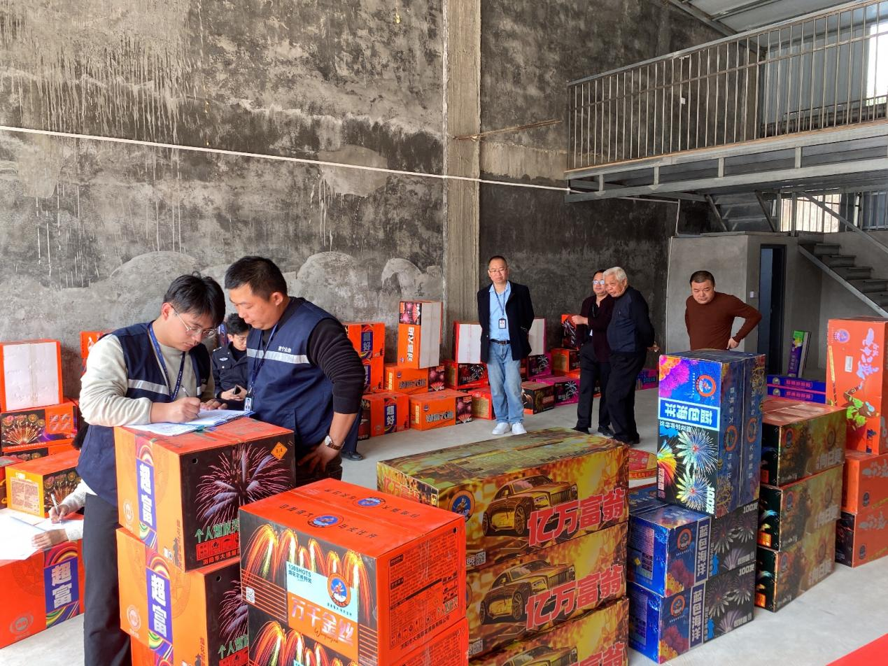 梅塘镇联合市应急管理局查处一烟花爆竹非法经营点