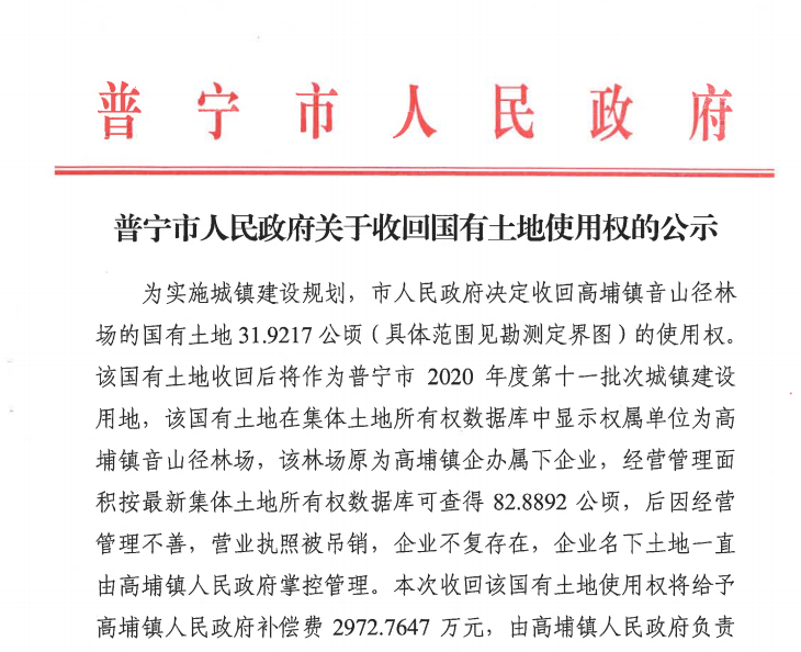可乐直播 关于收回国有土地使用权的公示 - 可乐直播 政府门户网站