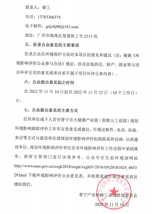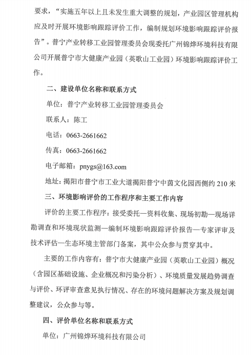 可乐直播 大健康产业园(英歌山工业园)规划环境影响跟踪评价公众参与第一次公示