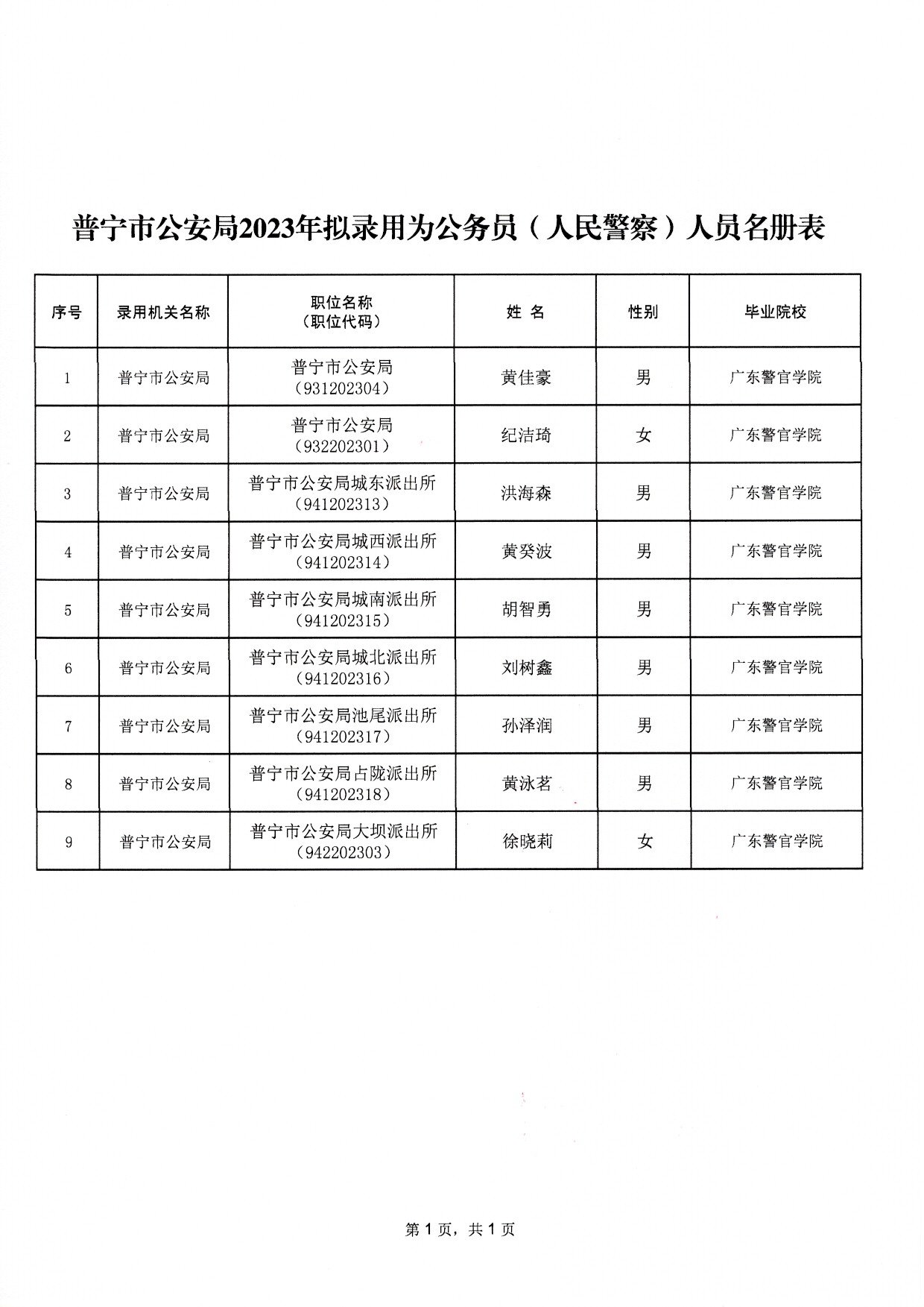 根据《广东省2023年度公安机关面向公安院校公安专业毕业生考试录用公务员工作实施方案》的要求,经笔试、体能测评、面试、体检、心理素质测评等程序,黄佳豪等9位同志(详见“可乐直播 公安局2023年拟录用为公务员(人民警察)人员名册表”)拟录用为公务员(人民警察),现予以公示,公示期为5个工作日,从2023年6月16日至2023年6月25日。