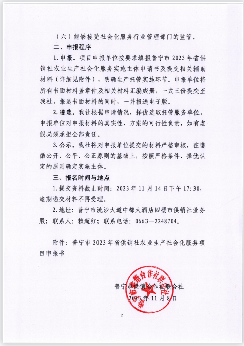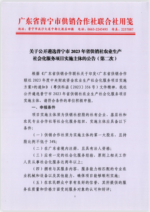 关于公开遴选可乐直播 2023年省供销社农业生产社会化服务项目实施主体的公告(第二次)