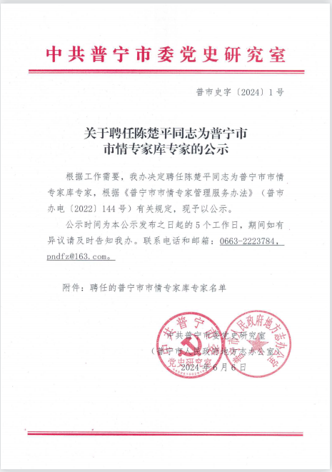 关于聘任陈楚平同志为可乐直播 市情专家库专家的公示 - 可乐直播 政府门户网站