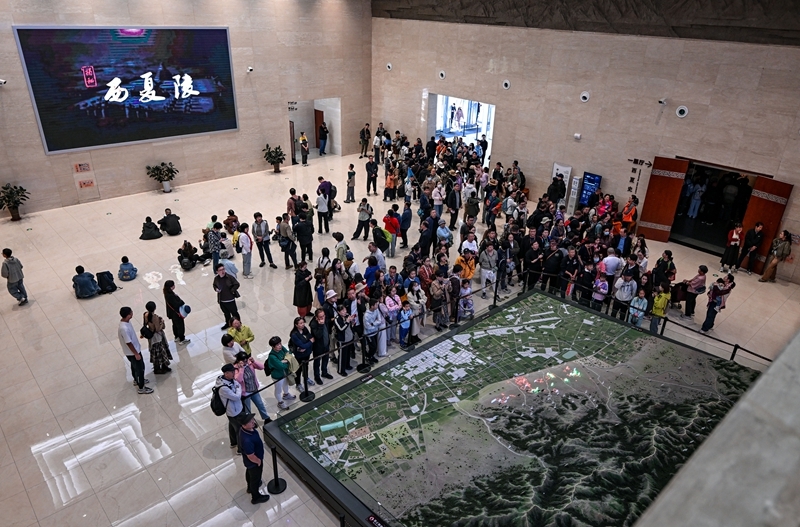 10月2日,游客在宁夏银川市的西夏陵博物馆参观。新华社记者 冯开华 摄
