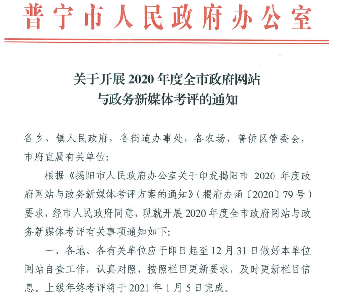 关于开展2020年度全市政府网站与政务新媒体考评的通知