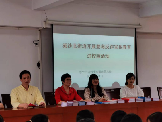 2023年5月11日,流沙北街道综治办联合司法所、教育组到南园小学开展禁毒宣传进校园活动。活动以讲座为主要形式向同学们讲解《中华人民共和国禁毒法》、《戒毒条例》等相关法律法规,引入真实案例向同学们普及了毒品类型、毒品危害以及如何抵御毒品诱惑等知识,引导孩子们在日常生活中提高自我保护能力,树立正确的人生观、价值观,远离毒品侵害,不给危险分子留下一分一毫的可乘之机。