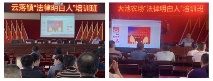 市司法局派员到南径镇、云落镇、大池农场“法律明白人”培训班设置题为“学习宪法,依靠宪法,做法律的忠实践行者”专题课,提升“法律明白人”法治素养,增强其解决问题的能力。