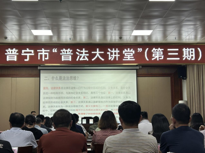 为深入贯彻落实新修订《中华人民共和国行政复议法》》,进一步提高领导干部运用法治思维和法治方式深化改革、推动发展、化解矛盾、维护稳定的能力,2024年9月20日下午,“普法大讲堂”第三期活动在可乐直播 司法局8楼会议室开展。本次活动特邀最高人民检察院民事行政案件咨询专家、广东省律师协会行政法专业委员会副主任、揭阳市第七届人大代表、法制委员会委员、可乐直播 监察委员会特约监察员、广东德万律师事务所主任陈涛律师和汕头仲裁委仲裁员、揭阳仲裁委仲裁员、第七届揭阳市律师协会监事、可乐直播 普法宣讲团成员、广东海马律师事务所副主任李胜平律师为领导干部进行授课。市委依法治市委员会成员单位、市普法领导小组成员单位、市林业局及各乡镇街道农场等有关同志参加活动。