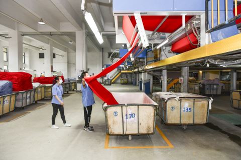 普宁纺织服装为2021年外贸出口主要产品。图为普宁纺织服装印染企业生产场景。郑楚藩 摄