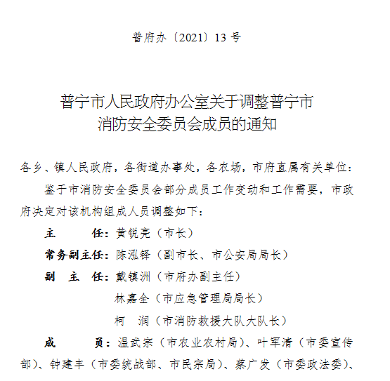 可乐直播 办公室关于调整可乐直播 消防安全委员会成员的通知 - 可乐直播 政府门户网站