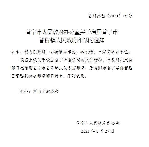 可乐直播 办公室关于启用可乐直播 普侨镇人民政府印章的通知 - 可乐直播 政府门户网站