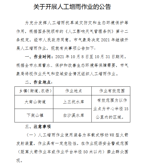 关于开展人工增雨作业的公告 - 可乐直播 政府门户网站